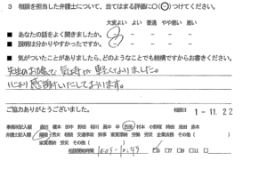 お客様の声(ご相談者の声、評判・口コミ) 公開日:2020/07/13 お客様の声 先生のおかげで気持ちが軽くなりました。 心より感謝しております。 ■あなたの話をよく聞きましたか:大変よい ■説明はわかりやすかったですか:大変よい 「お客様の声(ご相談者の声、評判・口コミ)」 「お客様の声(離婚カウンセリング)」